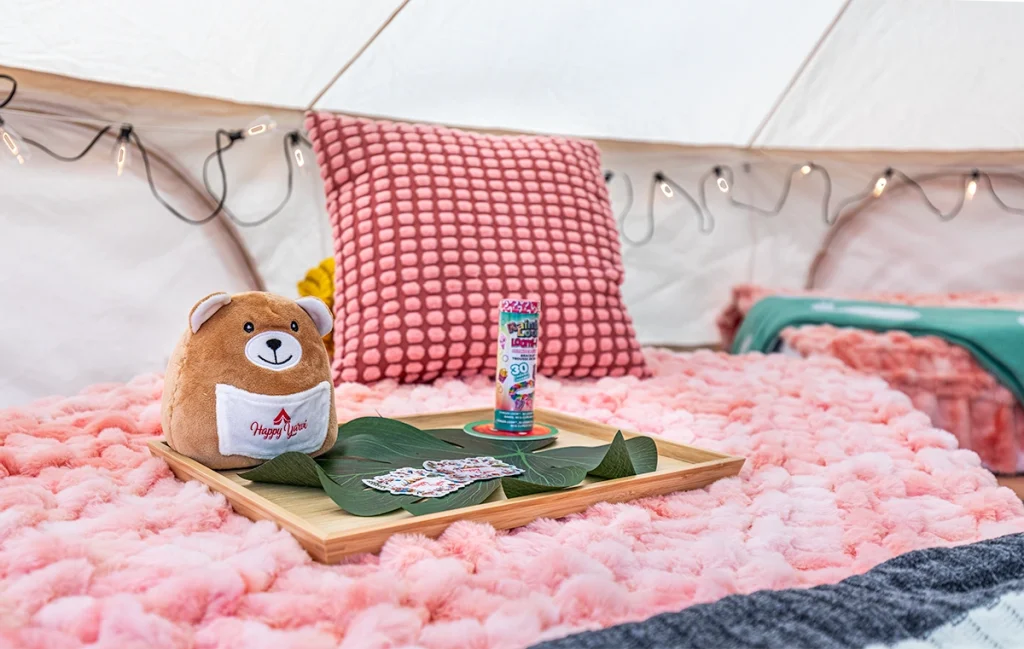 Yippee Yarvi is made for memory-making. Outfitted with comfy memory foam twin mattresses arranged on the floor of our spacious 16-foot bell tent, we designed this experience for giggles, ghost stories, and late-night chats. It’s great for kids’ and teens’ slumber or birthday parties, or a cozy hangout for grown-ups who want to spend time together. Yippee Yarvi is perfect for backyard glamping with friends.
